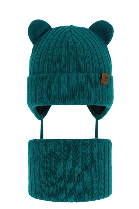 Kompletná zimná detská sada: čiapka a šál zelený Ferven