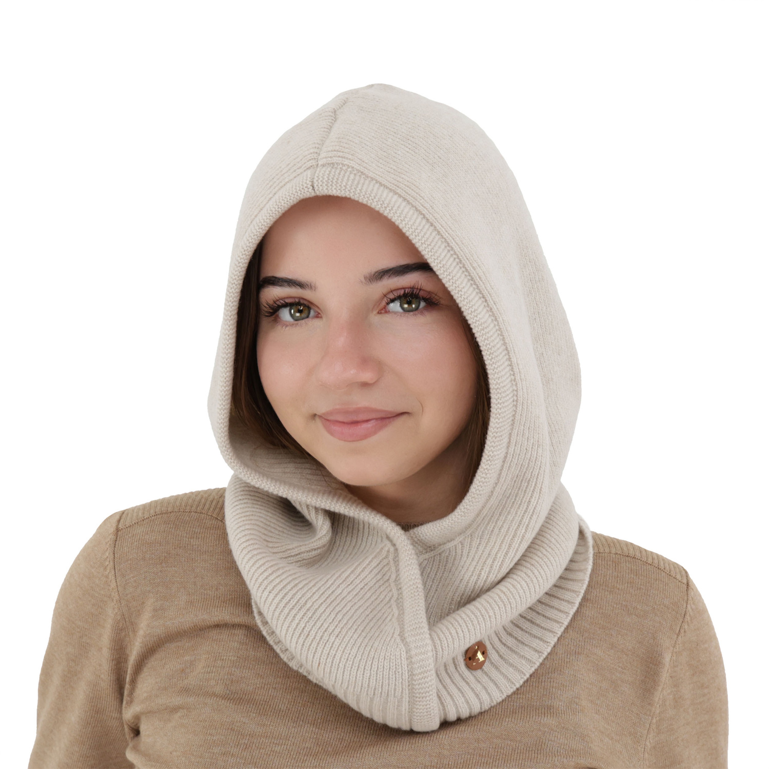 Kukla podzimní, zimní, dámská, béžová, merino vlna s kašmírem, Kiruna